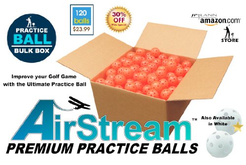 AirStream Practice Golf Balls (Wiffle Style) Bulk Boxes * Ball Size: 1-5/8" diameter. Weighs 1/4 oz. * Available in 3 Sizes (240, 120, 60) & 2 Colors: (Orange, White) * These golf balls can also be used to practice full swings with any club. They are perfect for backyard training because they will never go to far due to the lightweight perforated design. * Perfect for practicing your game in and outdoors, Great way to improve your short game in small places.