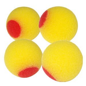 - Set of four foam golf practice balls which have hard inner cores