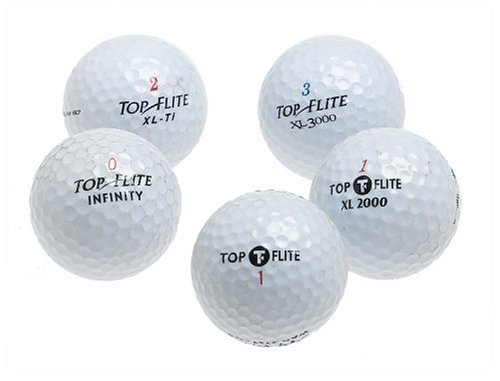 Topflite recycled white golf balls are two piece solid core construction and a mix of Topflite's most popular models. All balls are recycled and are GRADE A in good to excellent condition. Play the best baalls at a fraction of the new ball price. Balls are packed in a re-usable mesh drawstring bag.