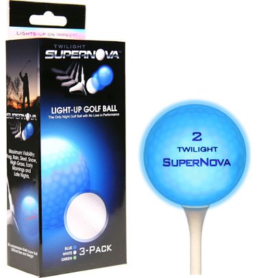 Sun Products Twilight SuperNova Light-Up Golf Balls Play In Any Weather Or Limited Light Conditions Twilight SuperNova provides maximum visibility during fog, rain, sleet, snow, high grass, early mornings and late nights. It also gives you high performance aerodynamics, control, accuracy, feel and distance you expect from a professional quality ball. Sun Products Twilight SuperNova Light-Up Golf Balls feature: Multi-layer ball with bright LED light stays active for 8 minutes after each hit After