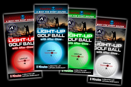 The best and brightest night golf ball. Official Size & Weight. Lights up for 8 minutes upon impact. After-glow technology makes ball visible continuously. Official Size & Weight. 80 compression. 40 Hours of play.