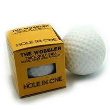 The Wobbler looks and feels like a regular golf ball...but when you putt...it never...never goes straight! The Wobbler lends itself to endless joke situations. Try it. Bet your golfing partner that he can't sink that pressure putt...switch his ball for the Wobbler, and watch the look of amazement on his face when the ball refuses to go straight!