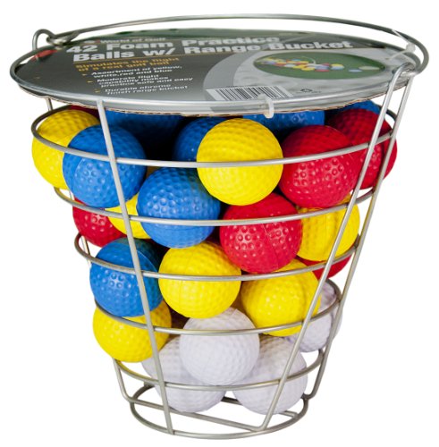 Golf Gifts and Gallery's Metal Range Bucket with 42 multi colored foam practice balls. These will simulate the flight of a real golf ball, and help in improving your game. Practice makes perfect!